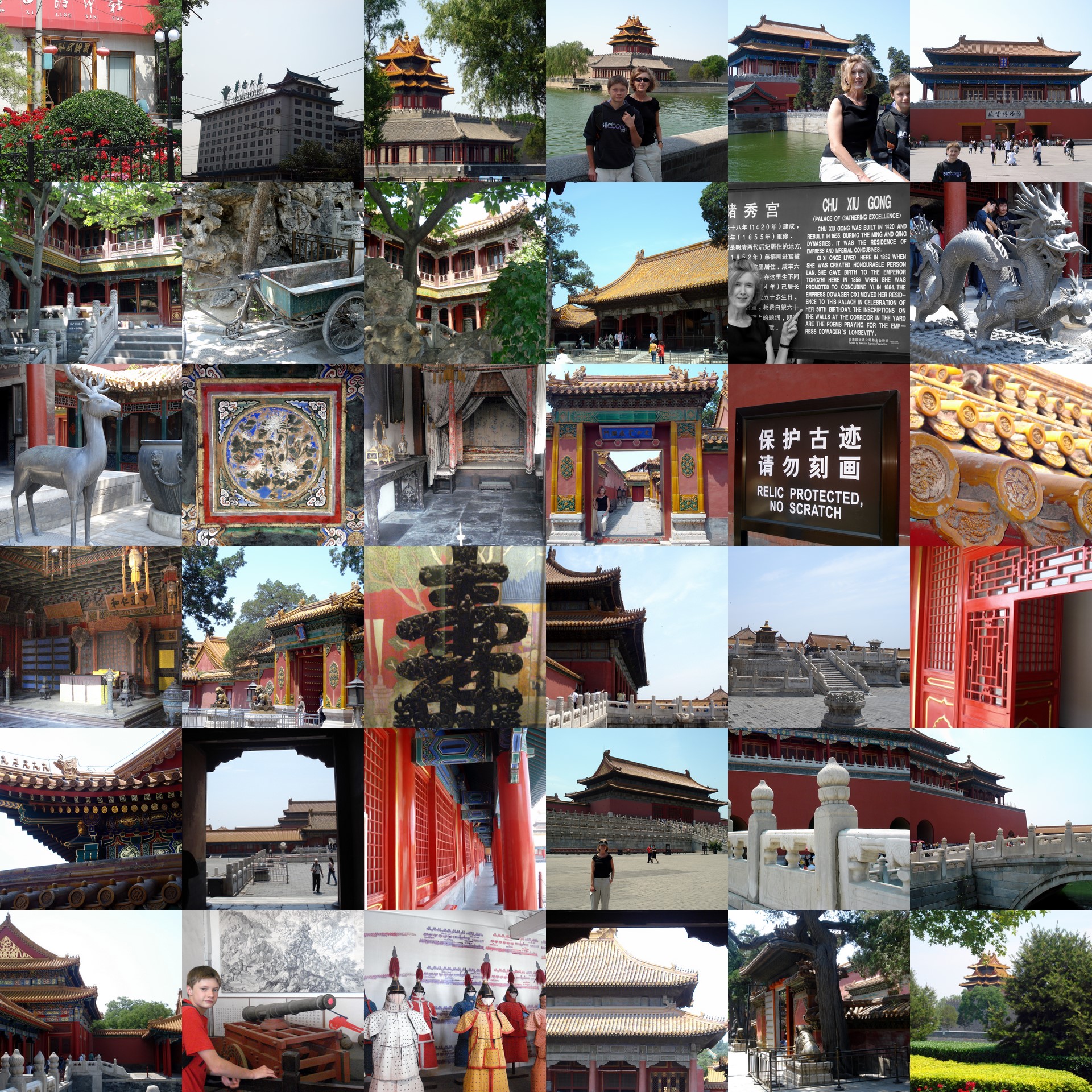 Wake-up Beijingmusic blasted over street loud-speakers outside our hotel at 8 a.m. Dutifully off we went each day to explore the city…Tiananmen Square, Forbidden City rich with great halls, pavilions & palaces that played home to 7 Emperors, Wangfujing Market, Olympic Square, the Great Hall of the People {akin to our Congress}, National Museum of China, the Monument to the People’s Heroes, Chairman Mao Memorial Hall, the Gate Tower over Zhengyangmen …beautiful gardens, lively & colorful restaurants, bustling underground tunnels, the retiring of the Red Flag at sunset.