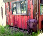 Fire pits encircled by outdoor chairs dot the landscape and my mind’s eye envisions last night’s guests warming themselves in the cool mountain evening as they swapped life stories. Small canopies will partner with ample aspen and prolific pine trees to offer shade in the afternoon. Further on down the trail a wheel barrow rests against an old shed.